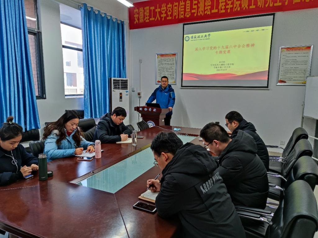 12月21日上午,学院业务副院长赵兴旺教授以《深入学习党的十九届六中全会精神》为题,在学院楼南404会议室为导航工程系教工党支部全体党员进行专题党课授课。