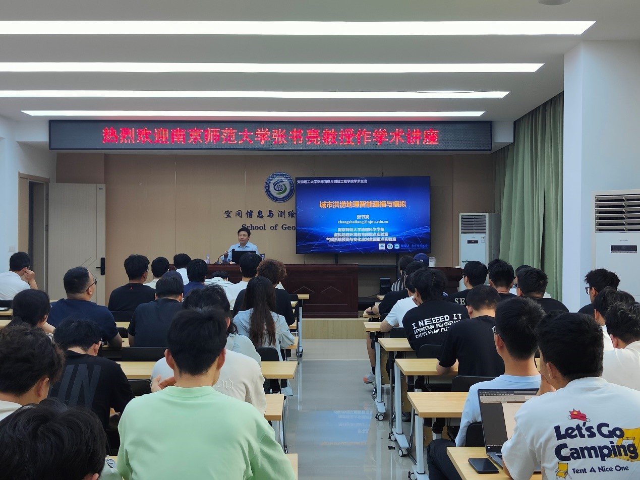 应空间信息与测绘工程学院邀请,6月12日上午,南京师范大学地理科学学院教授、博士生导师,学院教学委员会主任,南京师范大学虚拟地理环境教育部重点实验室副主任张书亮教授来我校,在求本楼北204学术报告厅作题为《城市洪涝地理智能建模与模拟》的学术报告。报告会由学院副院长王世航主持,学院部分青年教师、研究生和本科生等110余人聆听了报告。