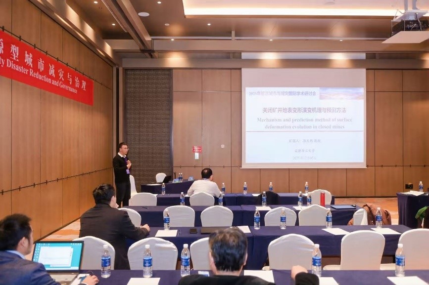 会议期间,王磊院长作为分论坛召集人主持了“资源型城市减灾与治理”分论坛阶段报告,郭庆彪教授在该论坛做了“Mechanism and prediction method of surface deformation evolution in closed mines”口头报告,陶远老师在“时空信息与智慧城市”分论坛做了“机理知识驱动的城市实提边界提取研究”口头报告,博士研究生程子苏在研究生论坛做了“融合多源数据的淮南市地表沉降时空特征分析与驱动机制研究”口头报告。此外,郭庆彪教授作为研究生论坛召集人还参与了研究生论文评审活动。