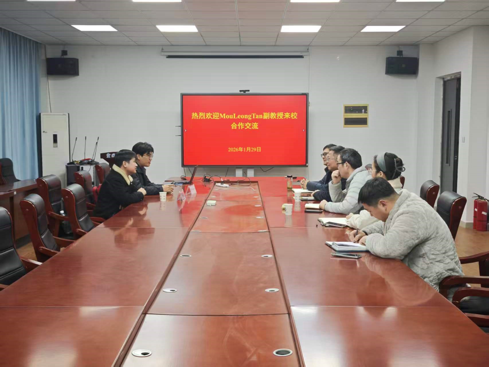 1月29日下午,马来西亚理科大学Mou Leong Tan副教授应邀到访我院,开展国际合作交流座谈。实验室设备处副处长赵兴旺、外国语学院教师邓高胜及我院教师代表参会,座谈会由院长王磊主持。