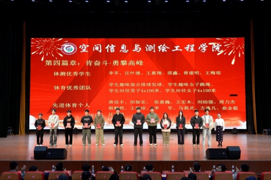 3月22日下午,空间信息与测绘工程学院在大学生双创中心报告厅举行2025年度学生总评表彰大会。学校合作发展处处长刘艳、就业创业指导中心主任徐泽绵、党委学工部副部长周雪晴、校团委副书记朱梁、教务处副处长陈庆玲出席大会,学院领导班子成员、全体师生参加大会。
