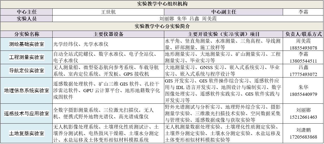 测绘科学与技术实验教学中心(以下简称“实验教学中心”)建于2014年,是学校批准设置的一级实验室,现有兼职、专职的管理、实验人员7人。实验教学中心现下设测绘基础实验室、工程测量实验室、导航定位实验室、地理信息系统实验室、遥感技术与应用实验室和土地复垦实验室6个二级实验室,以及矿山与地下测量、水下地形测量、虚拟仿真测量、三维实景测量等4个筹备实验室。实验教学中心现有实验用房面积约2300平方米,拥有北斗卫星导航定位系统、全数字摄影测量系统、无人船系统、惯性导航系统、室内外导航定位系统、陀螺全站仪、测量机器人、三维激光扫描仪、合成孔径干涉雷达、遥感数据处理软件、GPU云计算平台等先进实验仪器设备,固定资产约3000万元。面向全院本科生、研究生,以及学校开设测量课程的相关专业,共开设80余门实验(实习/实训)课程,可开出实验(实习/实训)项目200余个,可满足全院学生、教师和学校相关专业的实验教学和科研需求。实验教学中心是学院开展实验教学、科学研究、生产试验、技术开发及技术服务的重要场所。