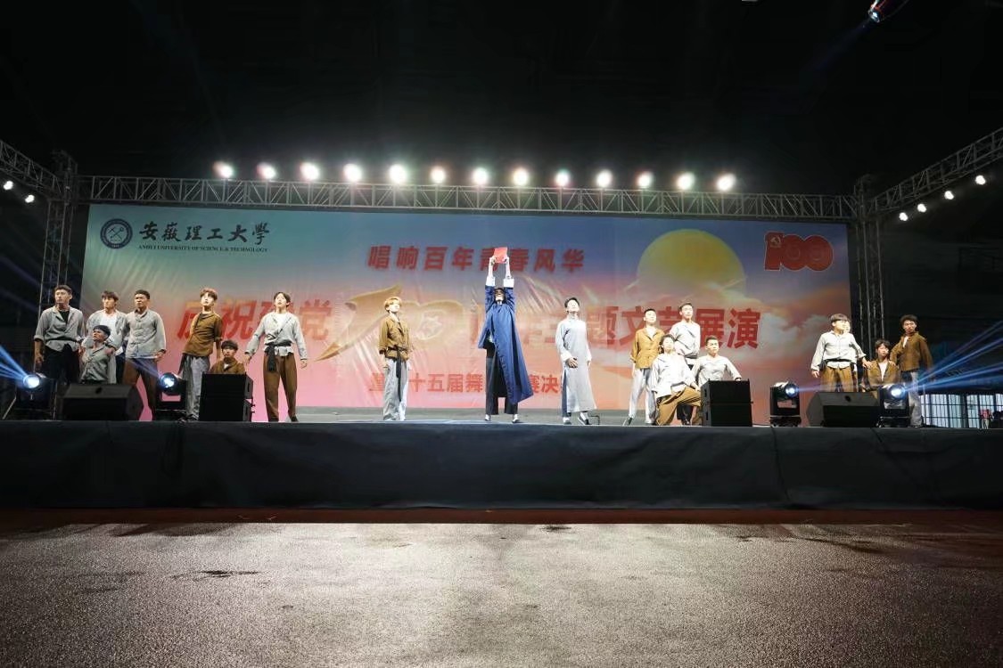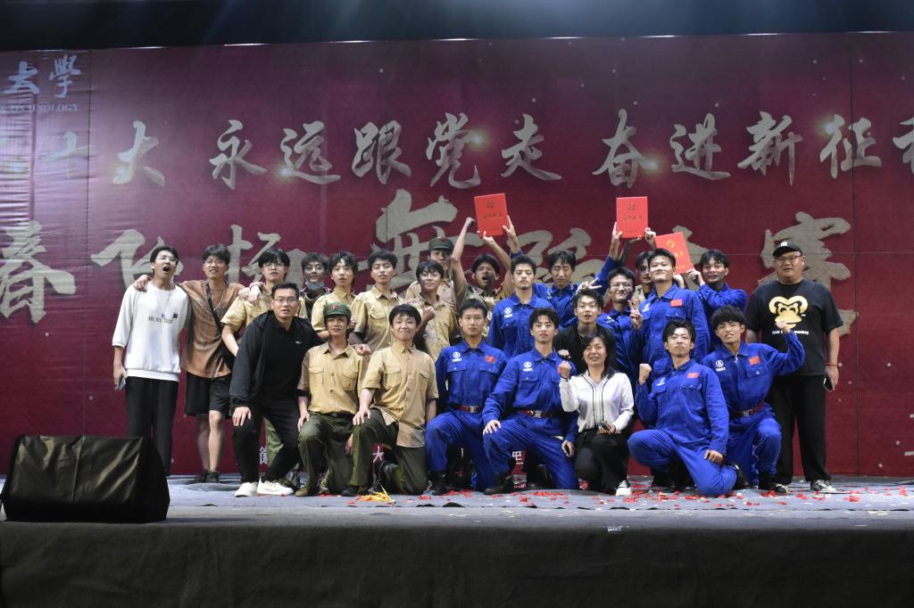 每晚在训练场上他们稳固的动作,换来了舞台上飒爽的身姿;每晚在训练场上他们挥洒的汗水,换来了舞台上响遏行云的呐喊;每晚在训练场上他们点点滴滴的进步,换来了舞台上展现出的最完美的“星”火相传。他们用饱满的热情完善并完成着每一个舞步,在聚光灯下构成一幕幕令人振奋的画面。舞姿时而柔缓,时而刚强,演绎着空测学子的英雄本色。